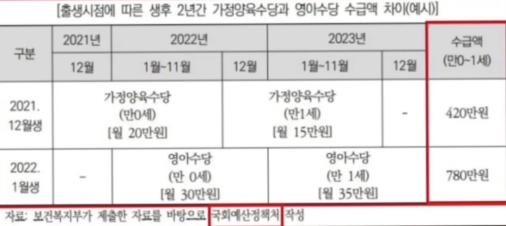 자녀 양육의 경제적 부담완화 및 돌봄 수요 충족을 위해 ‘2022년 1월 1일 출생아부터 매월 30만원씩 지급’