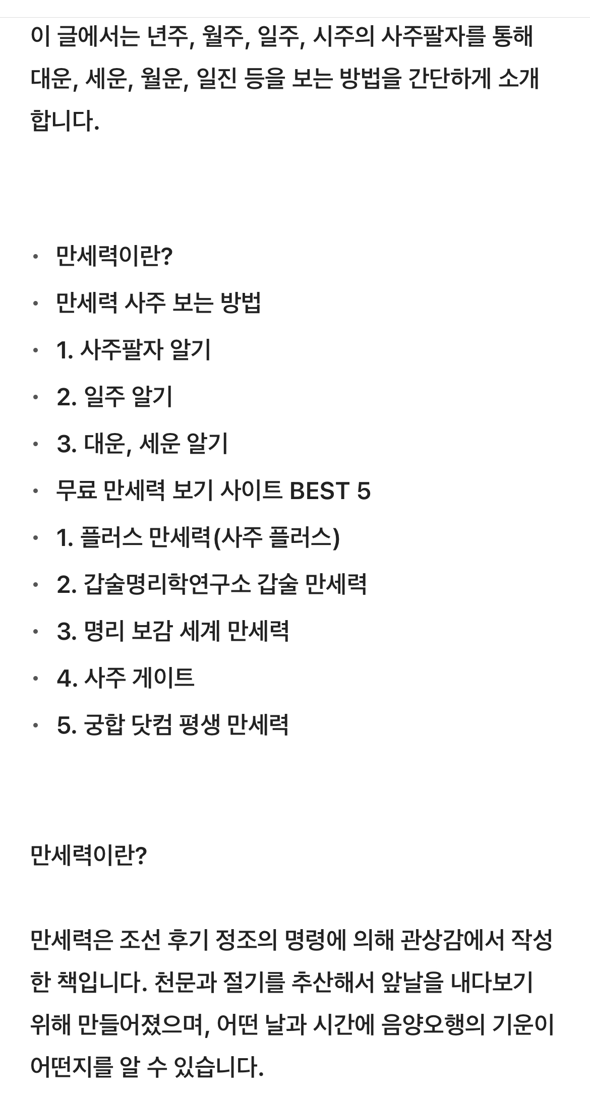 무료 만세력 보기 사이트를 5군데 직접 해보고 소개해드립니다! 쉽고 간단하게 자신의 만세력 사주 보는 방법을 알아보세요.
