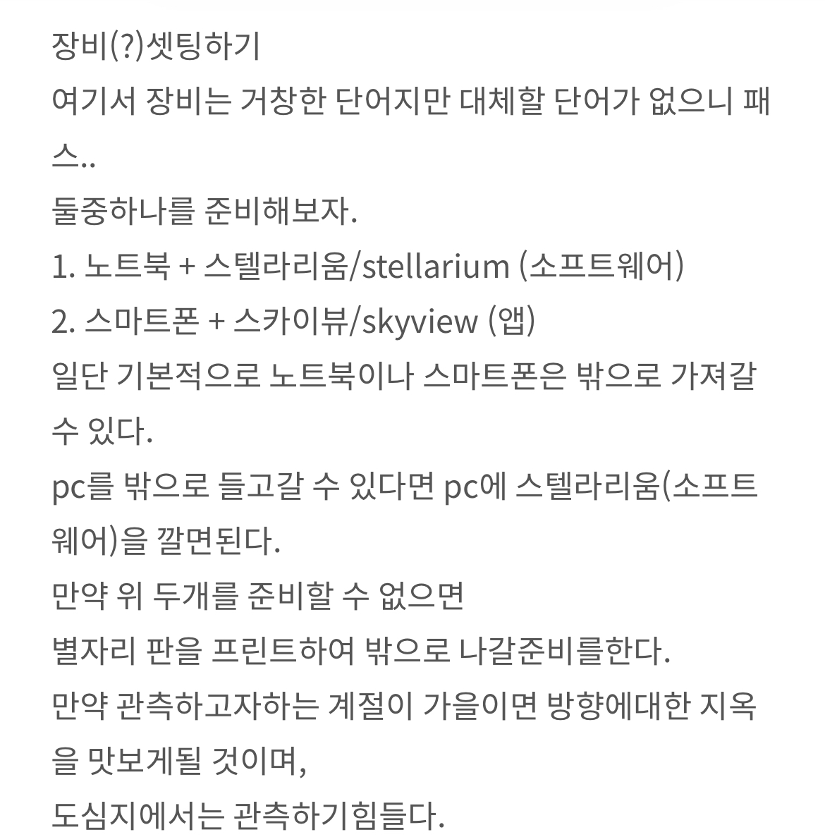 | 천체(별자리) 관측을 취미로하기 위해 가장 첫번째로 준비할것 (0) | 2022.05.04 |