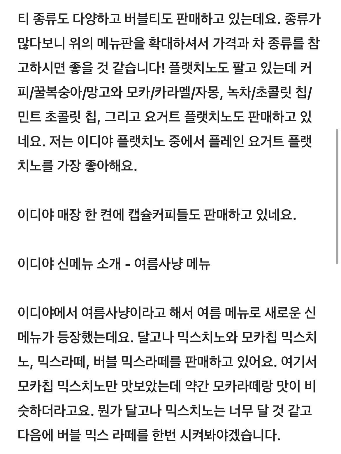 이디야 메뉴판 및 가격 정리